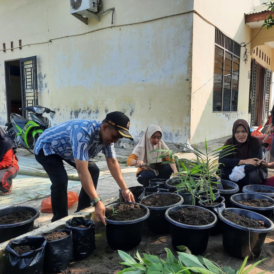Kegiatan Gotong Royong Perangkat Desa dan Ibu PKK mencabut rumut dan menanam beberapa bunga agar halam kantor terlihat lebih indah...